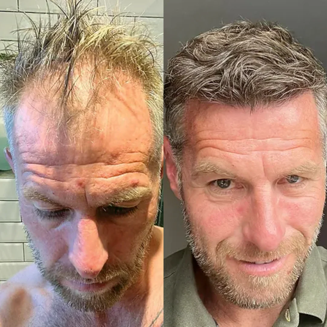 My biggest issue was at the front—my hairline was vanishing, my scalp was showing through, and my hair had lost all its density. It was getting harder and harder to style, and honestly, it made me look way older.