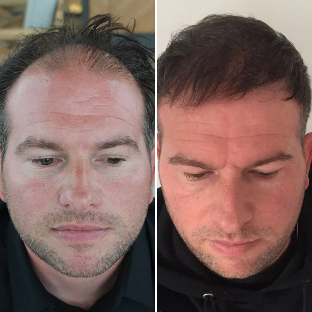 I started seeing baby hairs sprouting in thin areas within the first few weeks. By month 3, my hairline was visibly filling in, and the bald patches on the front of my scalp were barely noticeable. By month 7, my hair was completely back—healthy, thick, and full. And so was my confidence. My wife and friends say I look 10 years younger!